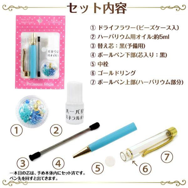 ハーバリウムボールペンキット 花材 オイル付き 手作りキット アクアオーシャン[M便 1/5]
