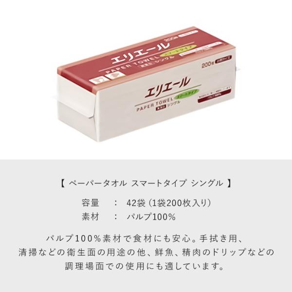ペーパータオル エリエールペーパータオルスマート小判シングル未晒200枚 42点(1点×42) 業務用