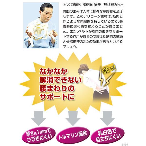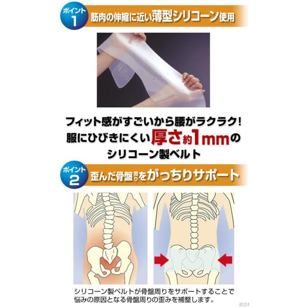 【優良配送】【あすつく】シリコーンならではの筋肉に近い伸縮性骨盤ベルト。骨盤をしっかり固定し、しなやかに腰にフィットし、腰の悩みをサポートします。骨盤のゆがみをしっかり補整し、超薄型でどんな服装でも着用でき、シルエットをくずさず、さりげなくご使用いただけます。シリコーンならではの筋肉に近い伸縮性でしなやかにフィット。骨盤をしっかり固定し、腰を軽く楽にしてくれます。ズレにくくきつく締め付ける必要がないので、動きを妨げることもありません。