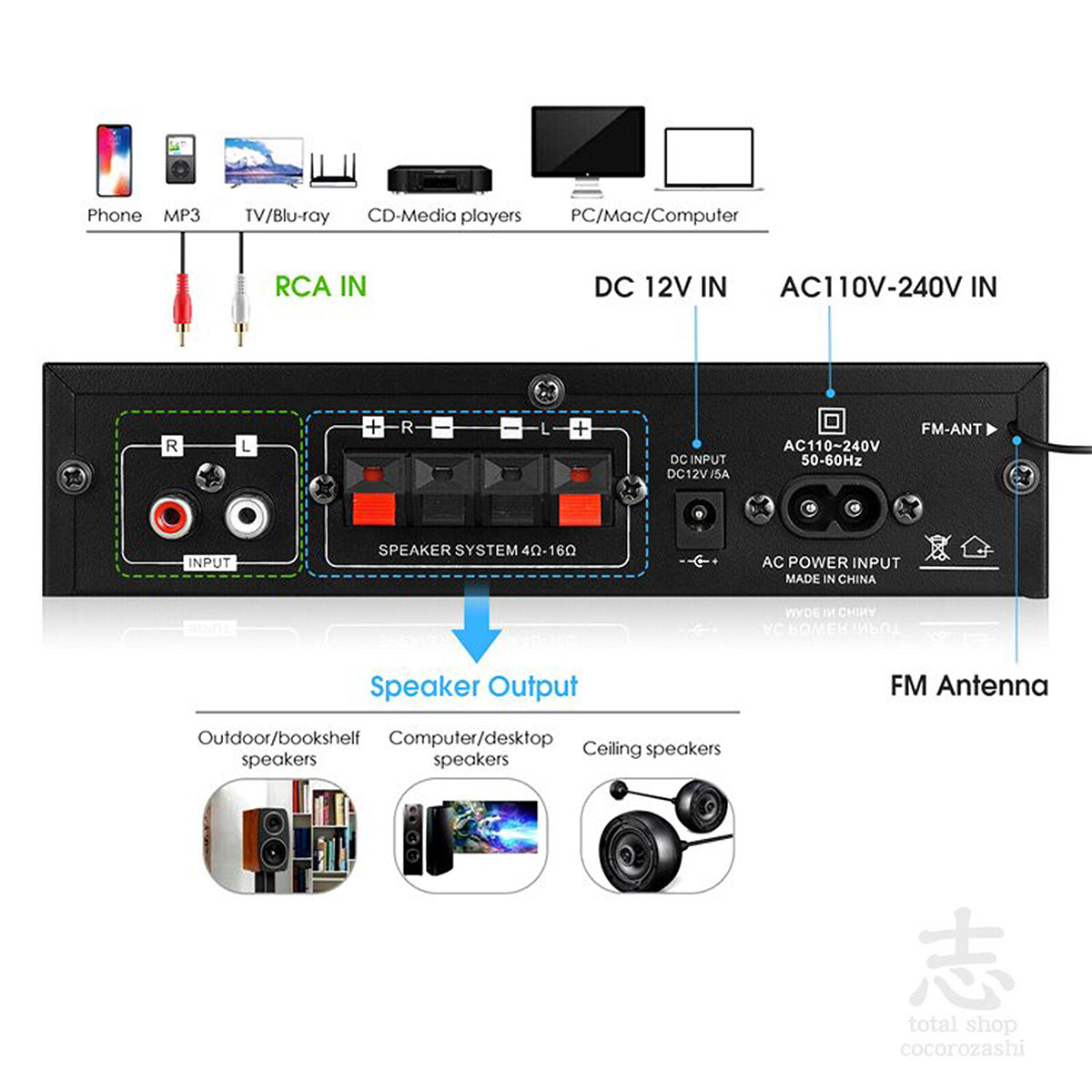 パワーアンプ 最大300W +300W デジタルアンプ オーディオアンプ 小型 2ch 実効最大 USB SD カード再生可 HiFi Bluetooth5.0対応 ハイパワー 高音質