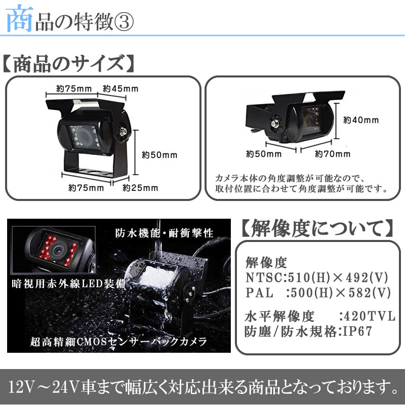 バックカメラ ミラーモニター セット 24V車 大型車 トラック