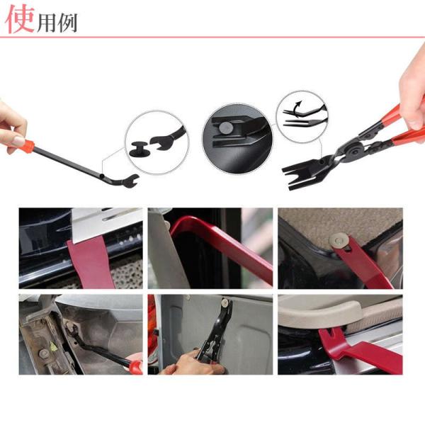 車内の各種パネルや内張りなどの内装や、オーディオ・カーナビなどの機器類の脱着に便利な工具セットです。