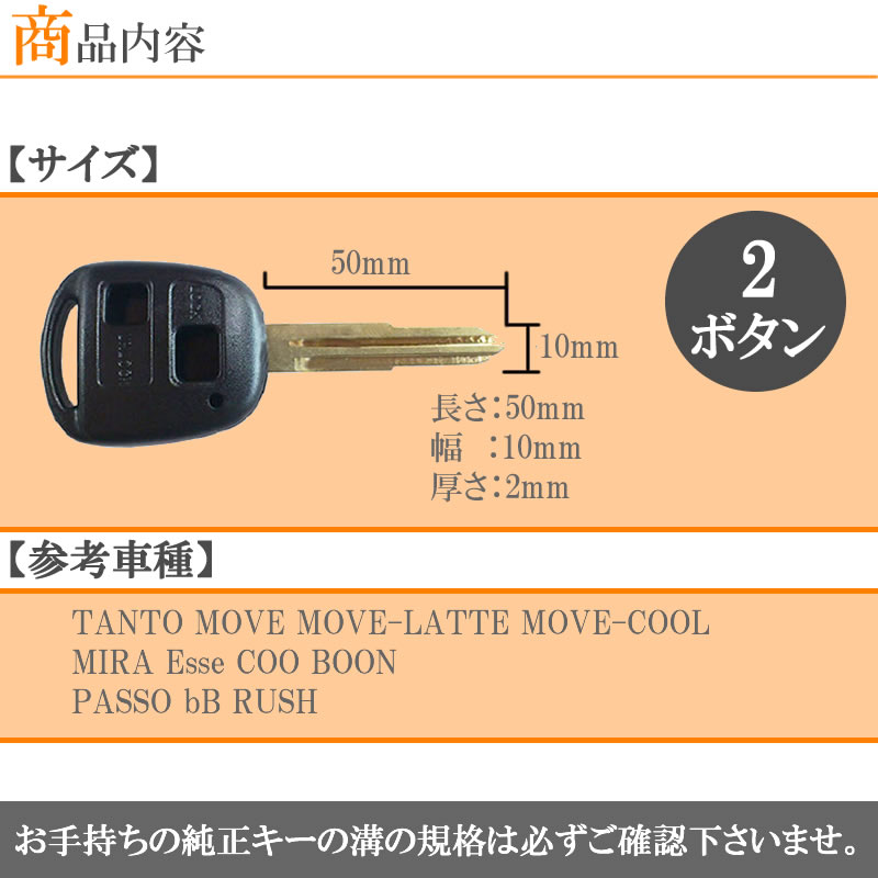ダイハツ 対応 ミラ ジーノ L650S キーレス 内蔵型 純正キー 互換 ブランクキー 合鍵 カギ 一定品質基準 2ボタンtype