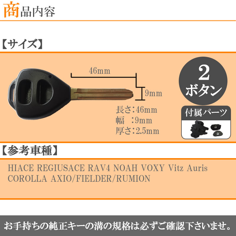 トヨタ 対応 ヴィッツ SCP90 KSP90 NCP95 内蔵型 純正キー 互換 ブランクキー 合鍵 カギ 一定品質 2ボタン