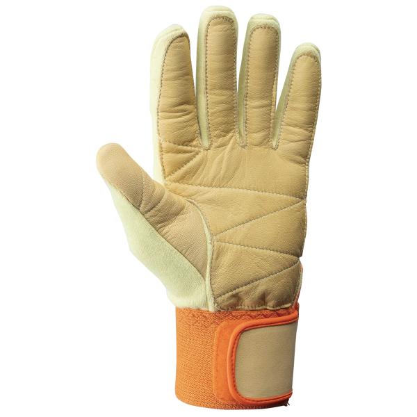 アラミド繊維ニット本体に、手の平全面は柔らかな牛皮で補強。