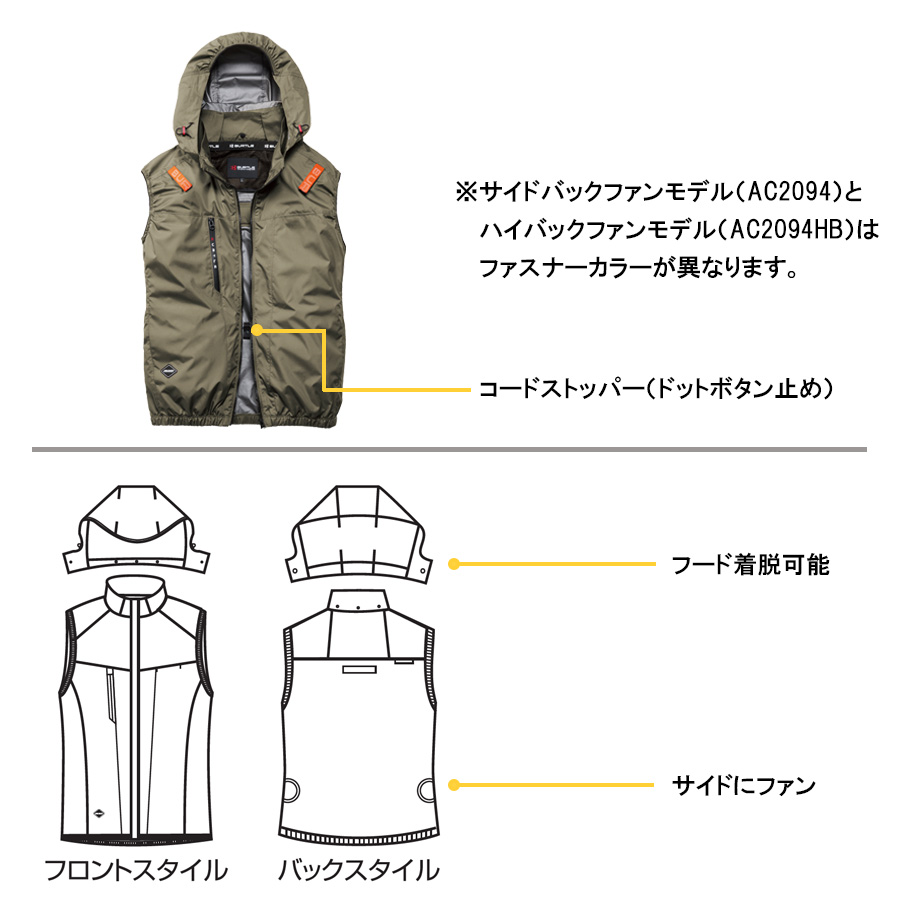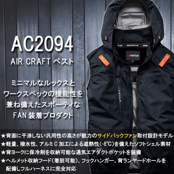 2026年モデル バートル エアークラフト サイドファン ベストセット バッテリー・ファン・作業服の3点組 AC2094set メンズ 空調 夏物 作業着 プロノ