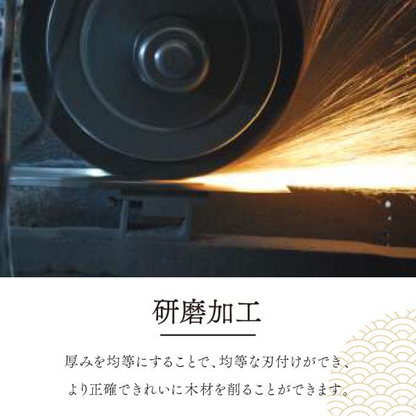 ・研磨加工:厚みを均一にすることで、均一な刃付けができ、より正確で綺麗に木材を削ることができます。