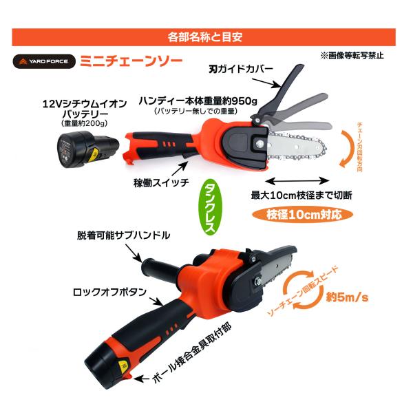 特別サービスパック 軽量 ミニチェーンソー YARD FORCE 12V コードレス 高枝電動チェーンソー ミニ ls-a10-jp 特殊便利なサービス付属品付 ヤードフォース