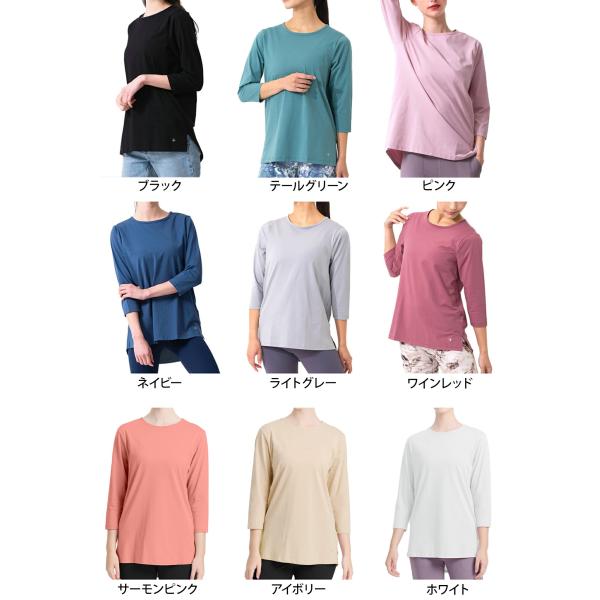 ヨガウェア ヨガ トップス ルーパ loopa 七分袖ロングTee 接触冷感 ストレッチ スポーツ Tシャツ ロング丈 吸水速乾 LSALE