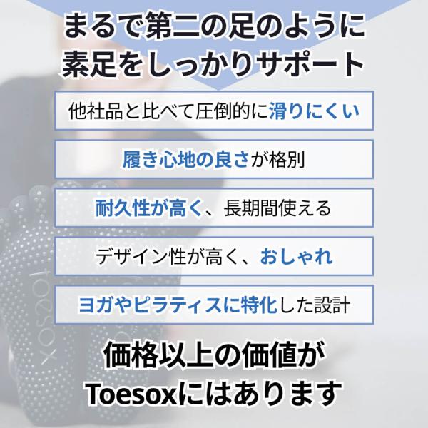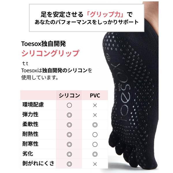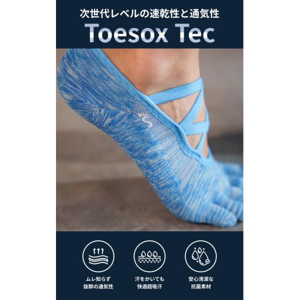 ■キーワード:toesoxの24SS新作ヨガウェア「 ローライズ Tec(Full-Toe/Half-Toe) つま先あり/なし 」は日本正規品の五本指靴下です。トゥソックス独自開発のシリコングリップが滑りを防ぎ、ヨガ・ホットヨガ・ピラティス・トレーニング・バレエなど幅広いスポーツシーンで活躍します。くるぶし丈のスニーカーソックスなのでタウンユースにも。優れた防臭機能と高い吸水速乾性生地で汗をかいても快適な状態が継続します。大きいサイズやシンプルな黒色の展開もありレディースはもちろんメンズにもおすすめ。