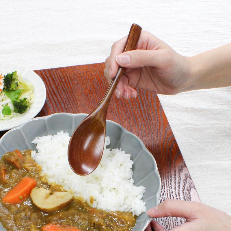 スプーン おしゃれ カトラリー 木 木製 カレースプーン 業務用 かわいい 大きめ 丼 19cm スープ お弁当用 漆 天然木製 食器 カレー カフェ
