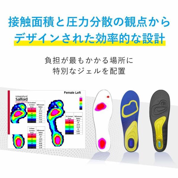 人間工学に基づくジェルアクティブテクノロジーがインソールに優れた衝撃吸収性とクッション性を実現。