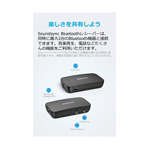 Anker Soundsync Bluetoothレシーバー(Bluetooth 5.0 レシーバー)【12時間再生 / ハンズフリー通話対応 / 2台同時接続 / 自動車・ホームステレオ・
