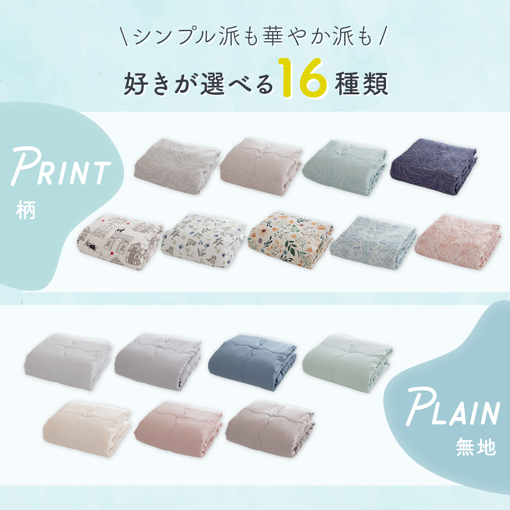 無地も柄も揃った、お気に入りが見つかる肌掛け布団。
