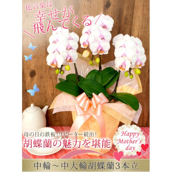 【2026母の日限定】 水分計サスティー付♪ 花色選べる胡蝶蘭 ミディ〜中大輪3本立 27輪以上 ラッピング付 送料無料 ギフト プレゼント 生花 鉢花 [r-m2026-C]