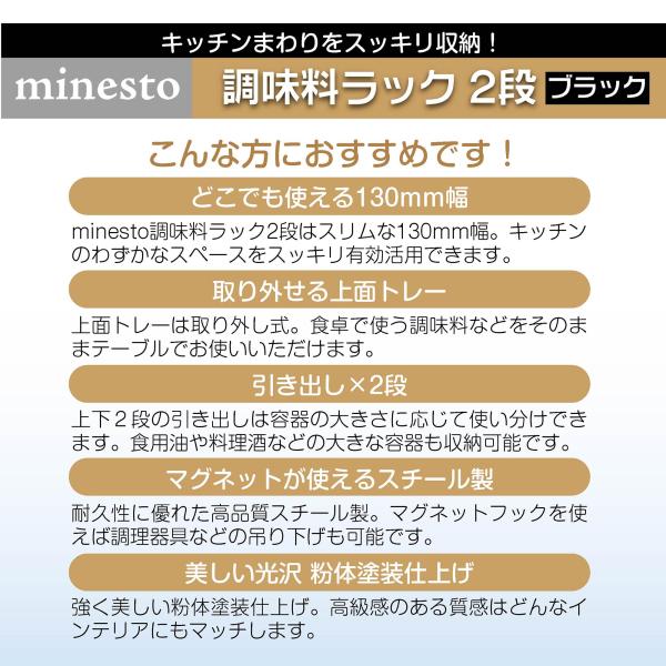 隠せる調味料ラック おしゃれ 調味料ラック キッチンラック 調味料収納 2段 調味料 省スペース コンロ横 幅13cm 大容量 大型 キッチン収納 ブラック2段
