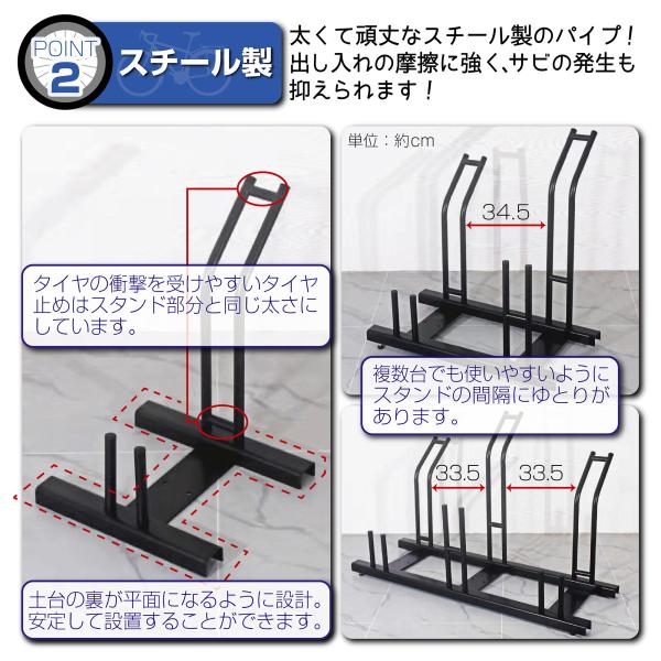 自転車スタンド 横風に強い 頑丈 自転車 ラック 倒れない 組み立て式 サイクルスタンド 固定できる 重量あり ズレにくい 玄関すっきり 自転車置き場 2台用