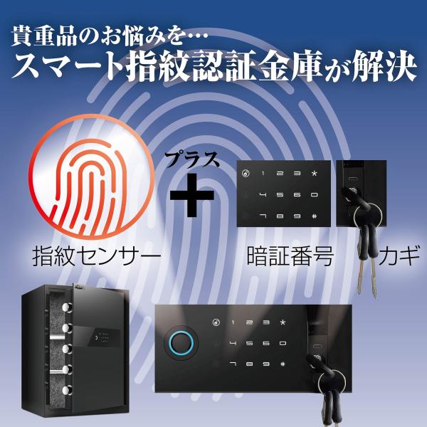 金庫 指紋 60cm ブラック 保管庫 緊急キー テンキー式 盗難防止 防犯 家庭用 小型 業務用 店舗用 ホテル 旅館 振動警報 壁付け アンカーボルト付き