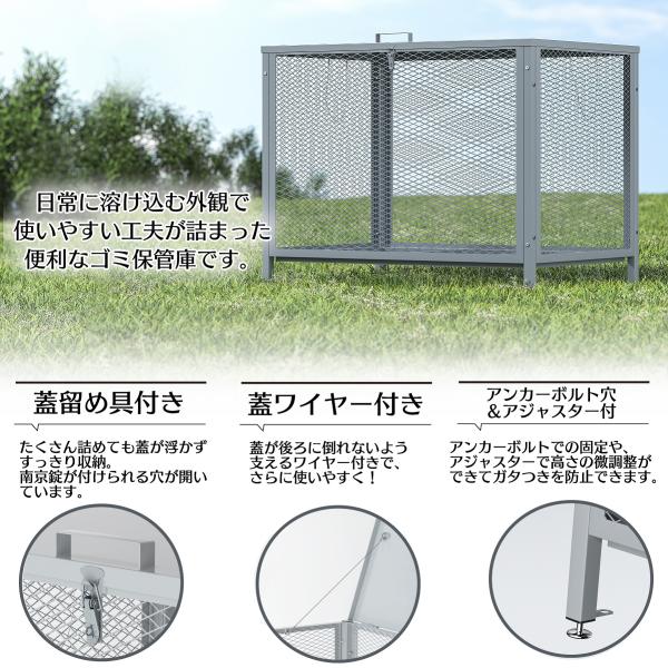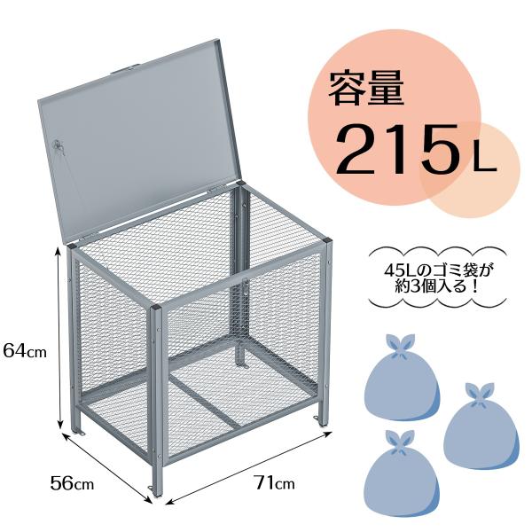ゴミ箱 屋外 大型 大容量 ゴミステーション 大きい 荒らし防止 ダストボックス ゴミ分別箱 組立簡単 ゴミ収納庫 安定性 耐久 庭園用 215L グレー