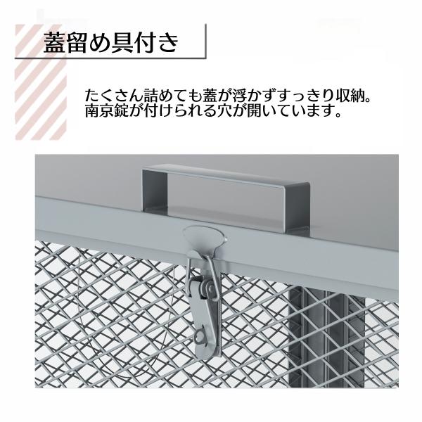 ・網目を従来品より小さく改良し、さらにフック付きの留め具でしっかりと蓋ができるのでカラスなどに荒らされる心配やストレスがなくなります。