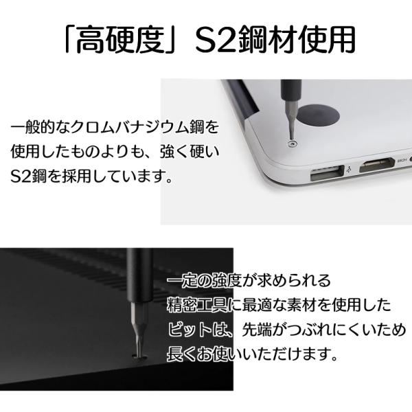 【高硬度】S 2鋼は高硬度で耐久性が高く耐摩耗性があるため、ビットの形状が変形しにくく長くご使用いただけます。分解・修理などの作業に最適です。