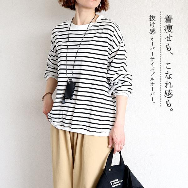 Tシャツ レディース トップス ロンT 春 秋 冬 白 黒 おしゃれ かわいい 30代 40代 50代 長袖 ボーダー カットソー 無地 ^t1003^