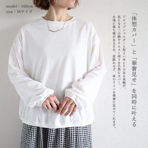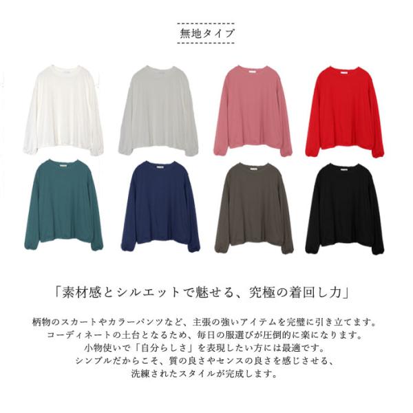 トップス カットソー 長袖 ロンT パフスリーブ Tシャツ リブ 綿混 無地 白 黒 ブラウン ボーダー ぽわん袖 シンプル 体型カバー 着痩せ 大人カジュアル ワンマイルウェア 二の腕隠し 40代 30代 50代 60代 大きいサイズ ゆったり 大人 カジュアル かわいい きれいめ SALE セール uricca ウリッカ うりっか