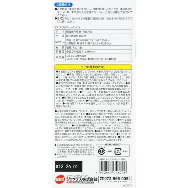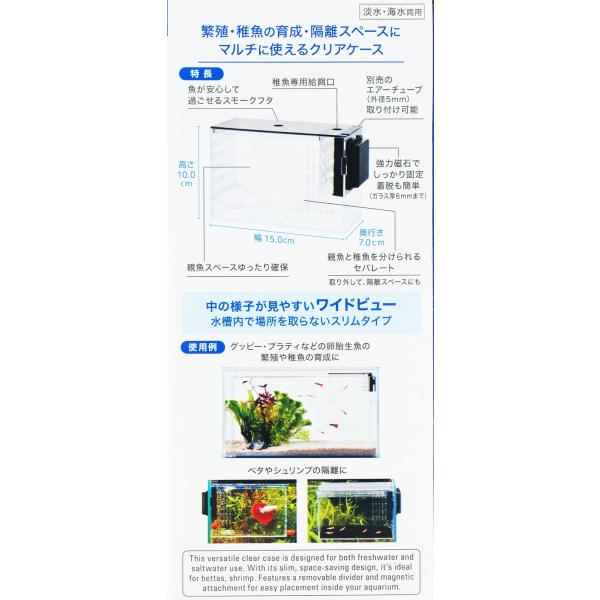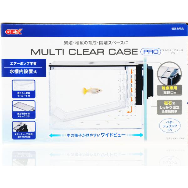 GEX マルチクリアケースプロはマグネットで簡単に水槽ガラス面に固定できる透明アクリル製の多目的飼育・隔離ケース。観察性に優れ、繁殖・隔離・給餌に対応。