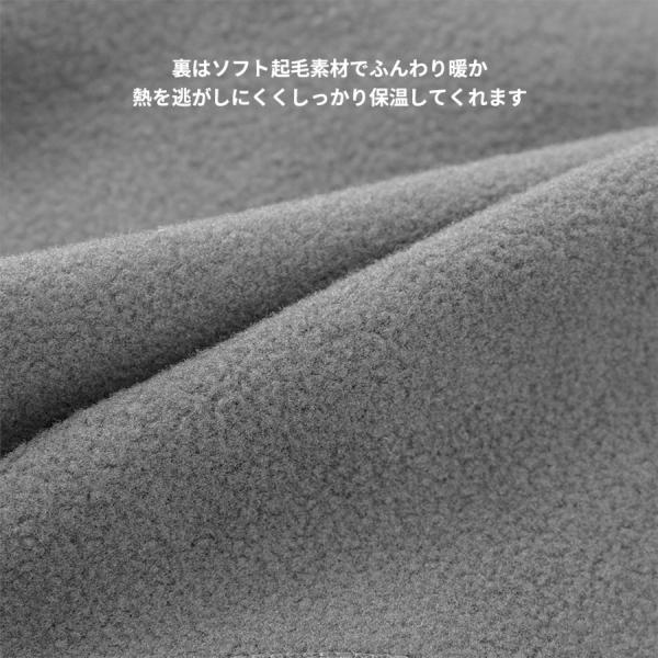 ・表地には防風・防寒素材を、裏地には保温性効果の高いソフト起毛素材のフリースを使用