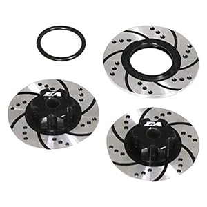 フロント用とリア用の3個が1セットになった、ファショナブルな硬質アルミ製ブレーキディスクです。ディスプレイや走行時にも実車感をご堪能頂けます。