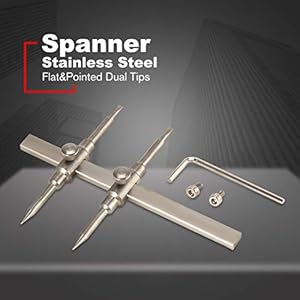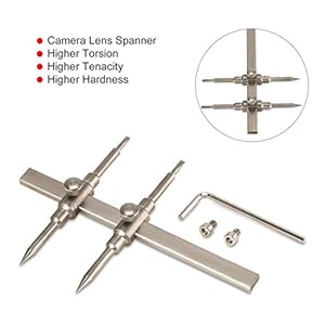 Features:1.Professional camera lens repairing and opening tool2.Ergonomically designed, easy to use.3.Made of high quality stainless steel with satin finish, high hardness and abrasion resistant.4.Surface polishing treatment, highher torsion, higher tenacity, higher hardness.5.2-screw-locking design makes the cross bar more flexible for adjustment.Description:1.Unique double-tip design, one pointed and one flat, considerate and convenient to use.2.More screw holes design make the cross bar more flexible.3.Perfect for camera lens repairing.Specifications:Color:silverMaterial:stainless steelItem size:100 x 140mmItem weight: 111gPackage Informations:Package Size: 168 x 120 x 30mm/6.61 x 4.72 x 1.18inPackage Weight: 143g/5.05ozGeneral Box PackagePackage Included:1 x Spanner for Camera Lens1 x Set of Accessories