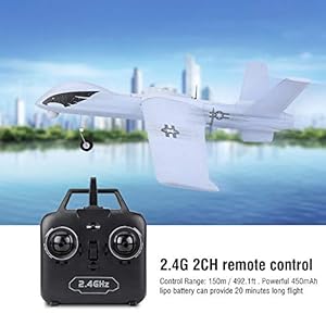 仕様: 素材:フォームメタル 色:グレー 重量:575g タイプ:飛行機 オプション:ライトバーなし、ライトバーあり モデル:Z51 サイズ:約 プロペラ直径:約5.6cm/2.2inch 翼幅:660mm/25.98inch 飛行機の重量:88g 長さ:400mm/15.75inch 飛行機のバッテリー:3.7V 450mAh 飛行時間:20分 充電時間:60分 コントローラーバッテリー:4 * AAバッテリー(別売) 制御範囲:150m/492.1ft パッケージリスト: 1 x RC飛行機キット 1 xコントローラー 1 xバッテリー 2 x着陸装置 2 xスペアプロペラ 1 x USB充電ケーブル 1 xマニュアル 1 xドライバー