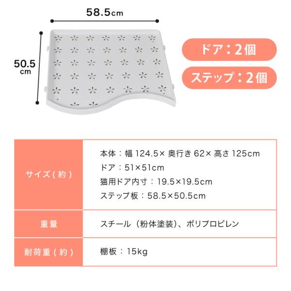 ネコ用、猫グッズ、ペット、ペットグッズ、猫用品、ペット用品、キャットハウス、ハウス、多段、多頭、スチール、ペットゲージ、お手入れ簡単、猫ゲージ、高級感、北欧、子猫、シニア猫、室内飼い、室内、白、ステップ付き、ロック、ロック扉、天井ドア、工具不要、頑丈、丈夫、天井ドア付き