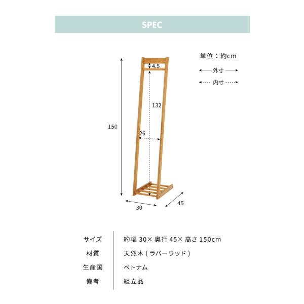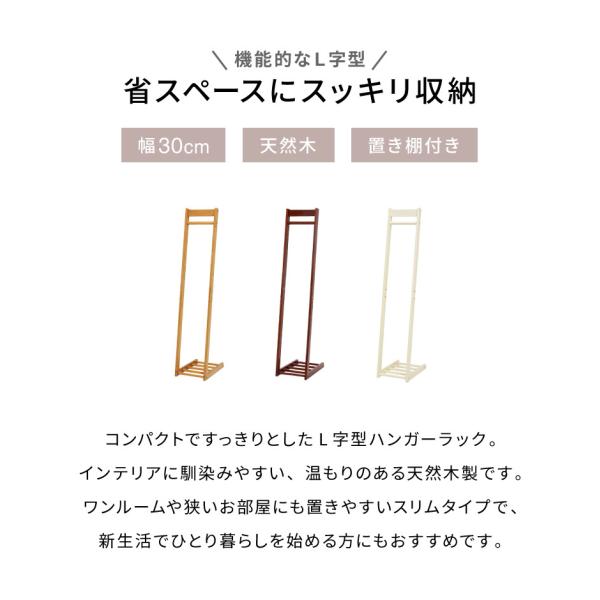 ハンガーラック 幅30cm 木製 天然木 スリム 省スペース おしゃれ L型 高さ150cm コンパクト コートハンガー 北欧 ナチュラル 衣類収納 洋服掛け 代引不可