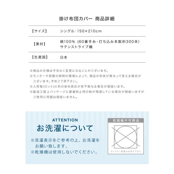 日本製 掛け布団カバー シングル 綿100% 防ダニ 高級ホテル仕様 サテンストライプ 150×210 高密度生地 布団カバー サテン 掛けカバー 掛カバー