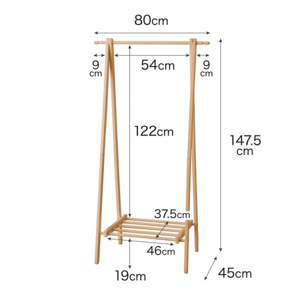 天然木 ハンガーラック 幅80cm 棚付き A型ハンガーラック