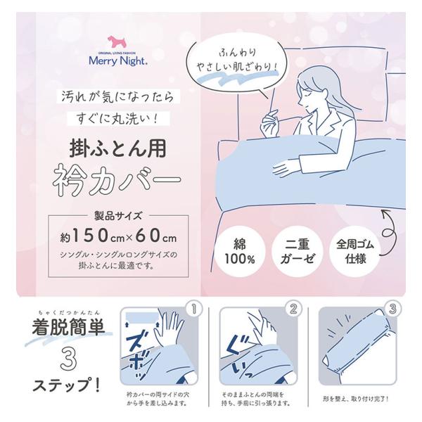 シングル・シングルロングサイズの掛け布団に対応しており、日常使いにぴったりの衿カバーです。