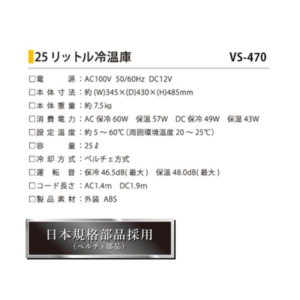 ポータブル 冷温庫 冷蔵庫 ベルソス VERSOS VS-470BK 25L