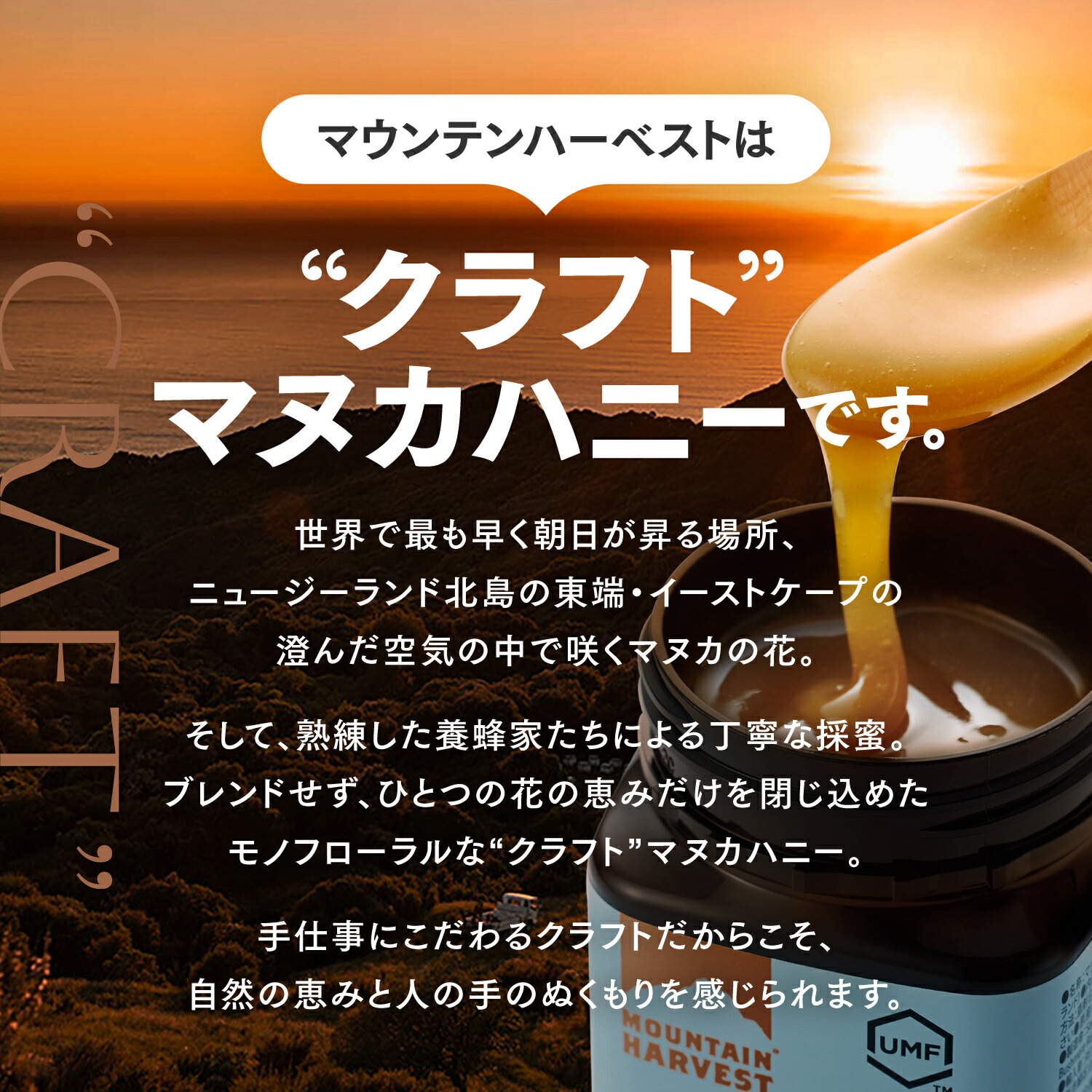 唯一無二の”本物”クラフトマヌカが日本初上陸。不純物ゼロ、大自然の恵みをそのままお届けします。