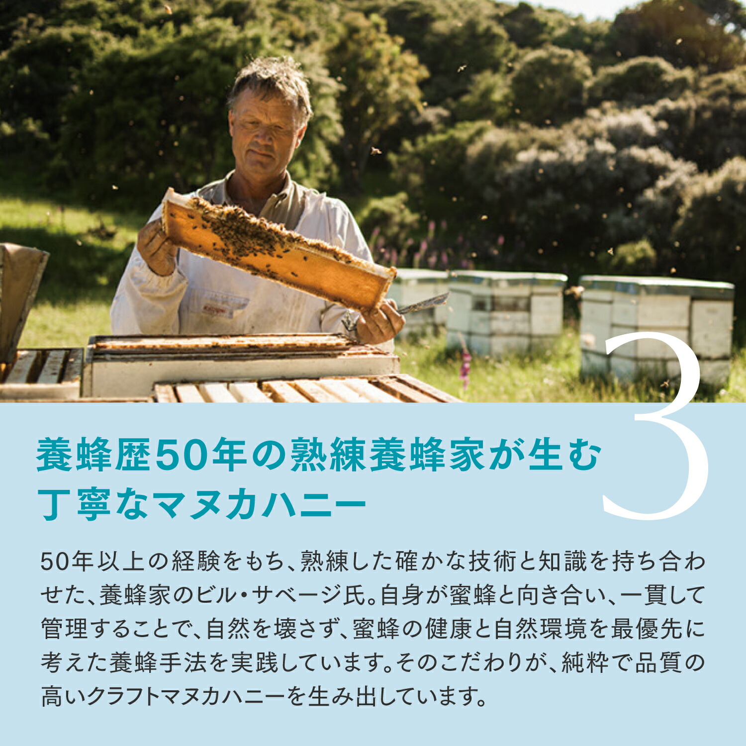 養蜂歴50年以上の熟練養蜂家が手作業で仕上げたノーブレンド、シングルソース製法。