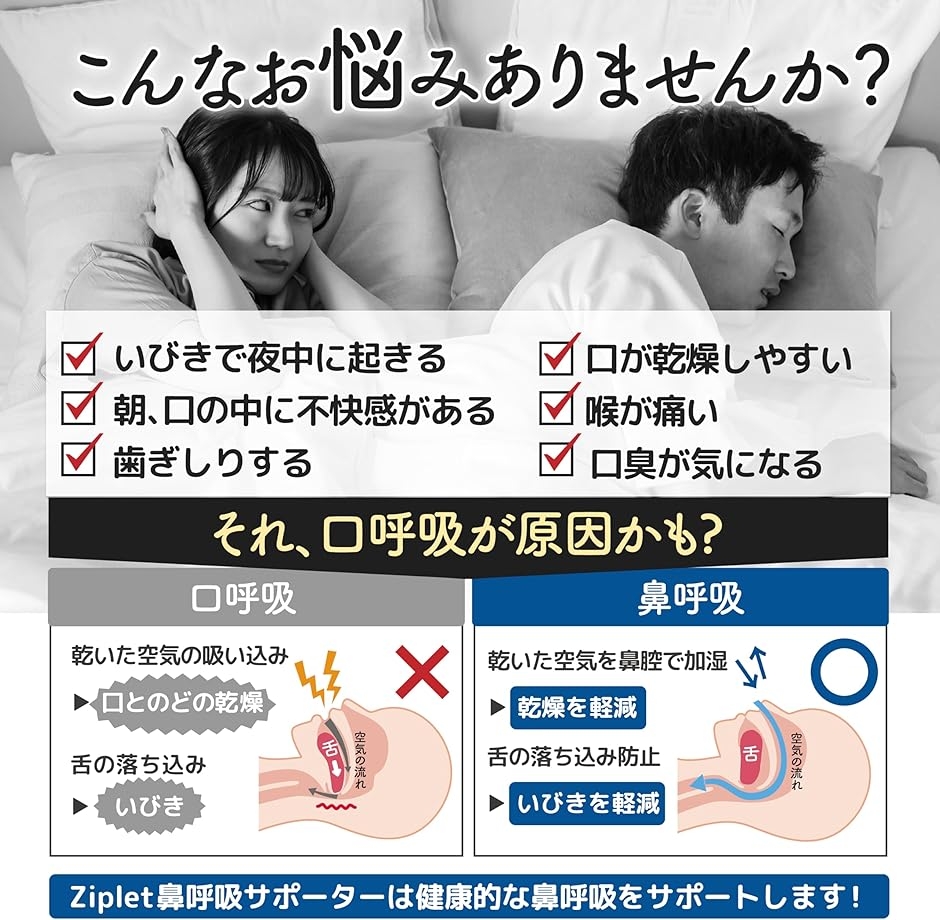 Ziplet いびき防止グッズ 鼻呼吸 口呼吸 防止