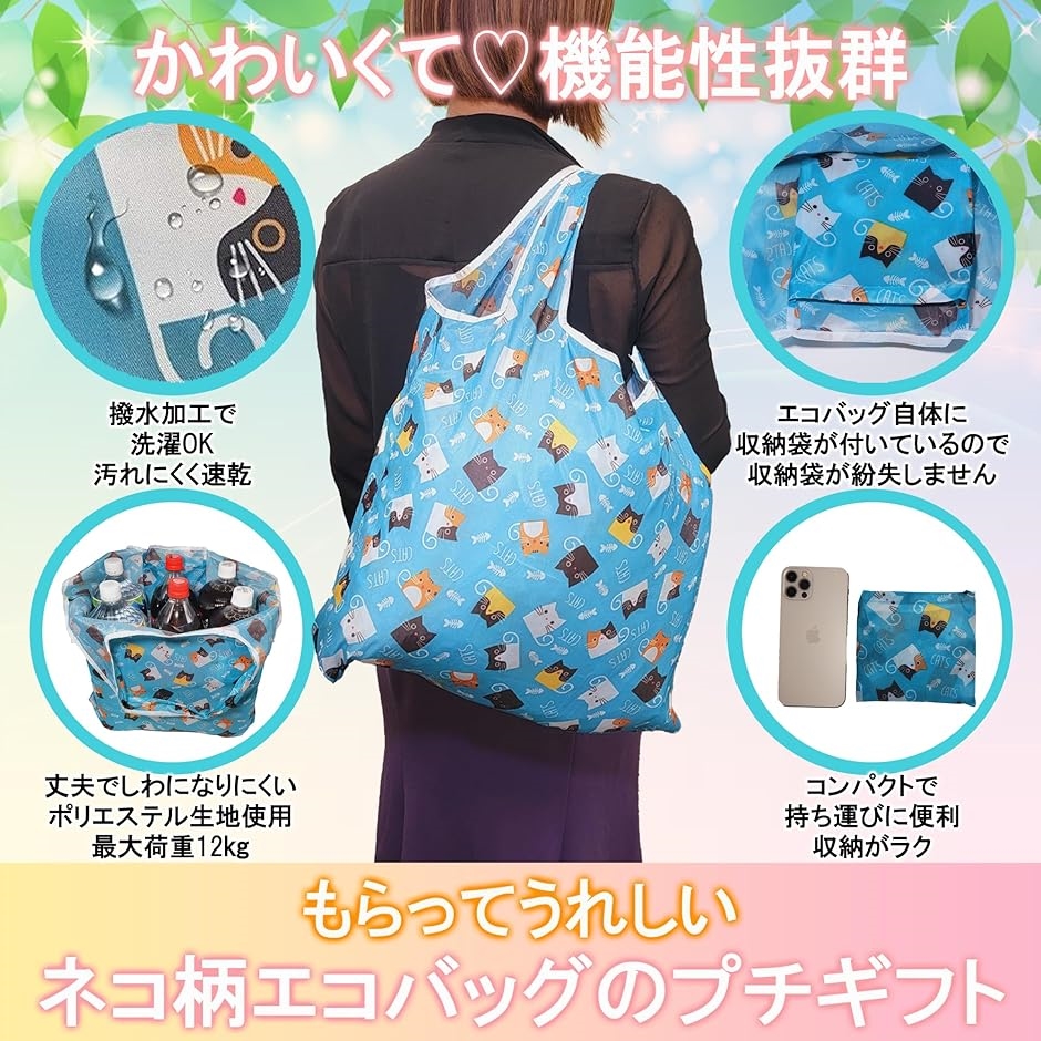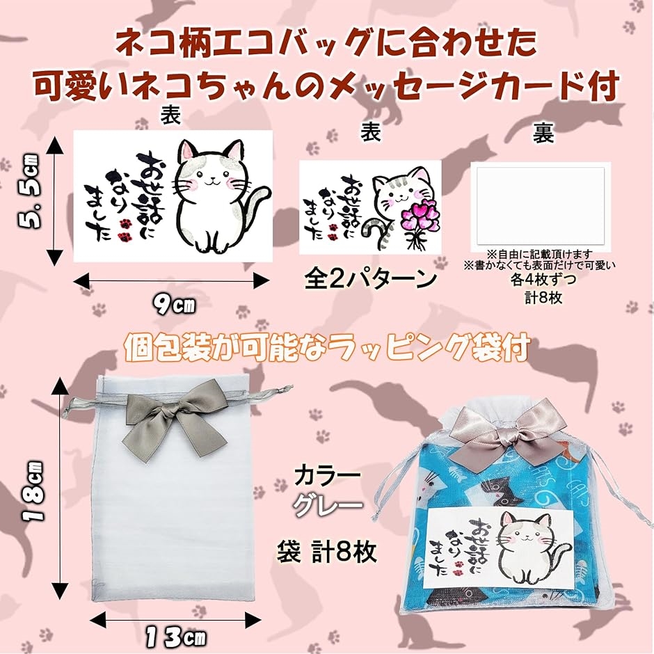 「かわいくて実用的」ネコ柄のエコバッグ&メッセージカードは感謝の気持ちを可愛く伝えることが出来ます。