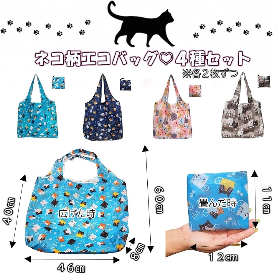 「内容量」 ・エコバッグ 4種x2 計8個 (広げ時サイズ46cmx60cmxマチ8cm) (収納時サイズ11cmx12cm) 重量28g 素材 ポリエステル ・ラッピング袋 1色x8 計8 サイズ13cmx18cm ・メッセージカード 2種x4 計8枚 サイズ9cmx5.5cm