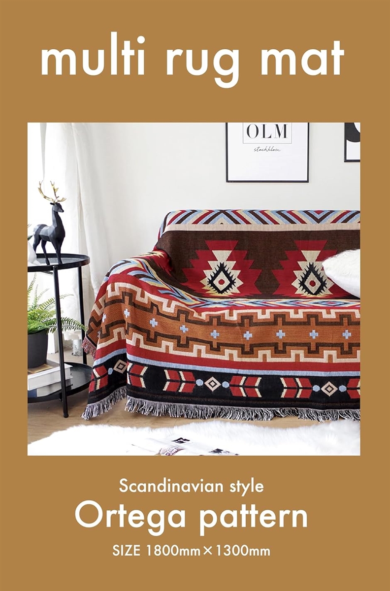 マルチラグ ラグマット 北欧 オルテガ柄 ソファーカバー レジャーシート キャンプ グランピング アウトドア 民族柄 rug 1.5畳