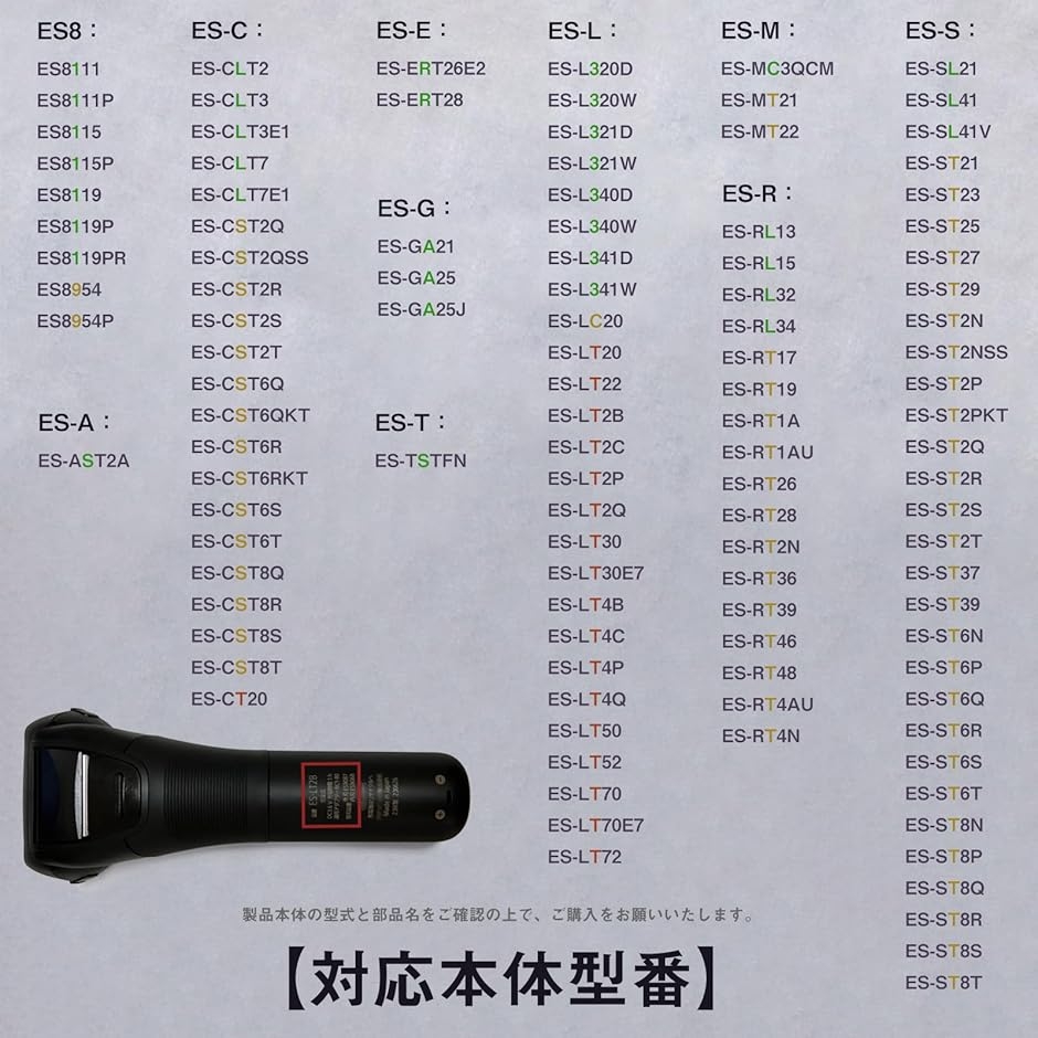 「対応本体型番」 ES8111 、 ES8111P 、 ES8115 、 ES8115P 、 ES8119 、 ES8119P 、 ES8119PR 、 ES8954 、 ES8954P 、 ES-AST2A 、 ES-CLT2 、 ES-CLT3 、 ES-CLT3E1 、 ES-CLT7 、 ES-CLT7E1 、 ES-CST2Q 、 ES-CST2QSS 、 ES-CST2R 、 ES-CST2S 、 ES-CST2T 、 ES-CST6Q 、 ES-CST6QKT 、 ES-CST6R 、 ES-CST6RKT 、 ES-CST6S 、 ES-CST6T 、 ES-CST8Q 、 ES-CST8R 、 ES-CST8S 、 ES-CST8T 、 ES-CT20 、 ES-ERT26E2 、 ES-ERT28 、 ES-GA21 、 ES-GA25 、 ES-GA25J
