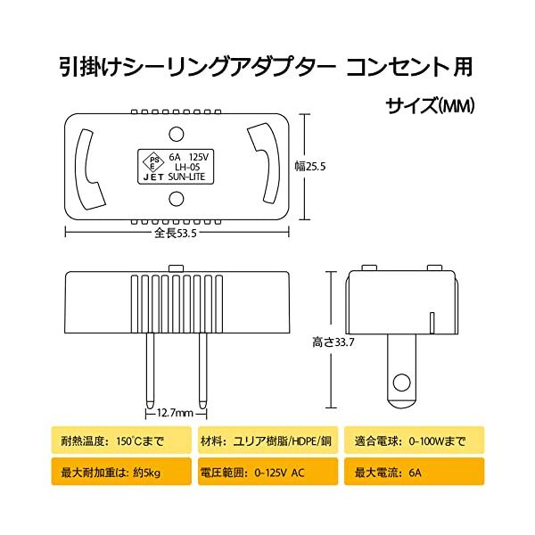 3.安全認証:PSE安全規格認証を取得しました。プラグの接合部には高い強度のプラスチック材料を使用して、最大耐加重は約5kg。
