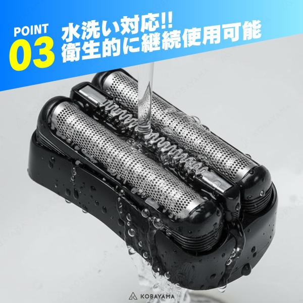 【ワンタッチ交換】網刃+内刃の一体型カセット。工具不要で外して差し替えるだけ。水洗いOKで清潔。