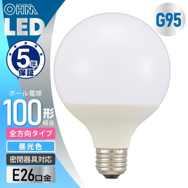 オーム電機 LED電球ボール電球形 E26 100形相当 G95昼光色 全方向 密閉器具対応 5年保証 LDG11D AG6 06-5532 OHM