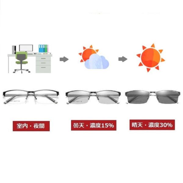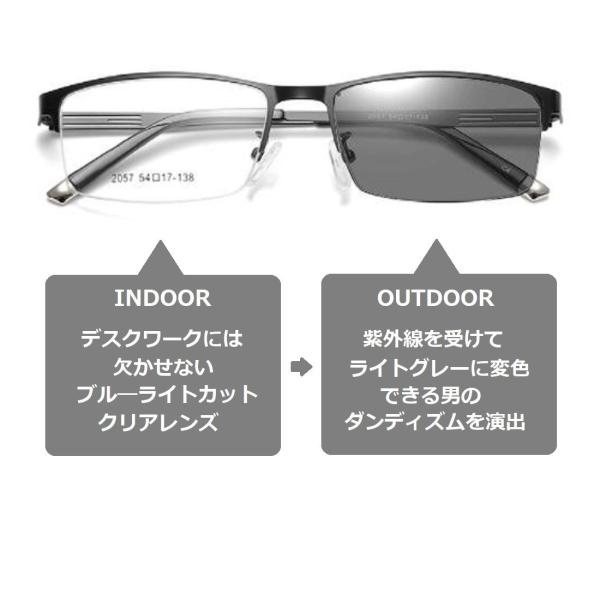 ブルーライトカット メガネ + 調光 変色 パソコン用 メガネ ビジネス PCワークから外出時はサングラスへ変化する2Way仕様 切れ味のあるダンディズム