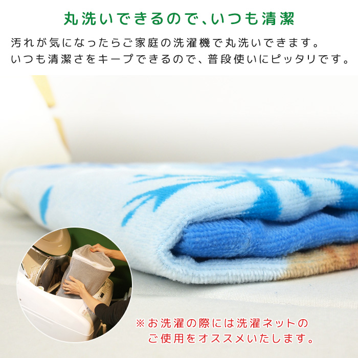 コンパクトサイズで持ち運びも簡単、レジャー・アウトドアなど色んな場面で活躍してくれる便利なタオルケットです。